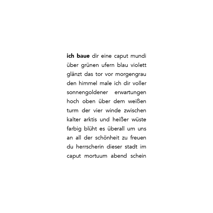 Was hat uns geprägt in unserem Leben? Welche Spuren des Lebens, des Liebens und Leidens haben sich in unser Gesicht eingegraben? Was wurde uns nicht schon alles an den Kopf geworfen? Wie viele schale Trinksprüche sind wie geronnenes Blut gleich dem alchemistischen caput mortuum im Sand des Lebens versickert, ohne den Lebenskelch zu füllen? Und dann, auf einmal, endlich, ganz überraschend, unter all den tausendfältigen Masken des Lebens erblicken wir die Geliebte, den Geliebten. Plötzlich flüstert uns diese Liebe ins Ohr, wir seien schön, wir werden geliebt, ja, sogar begehrt. Gelingt es uns überhaupt zu lieben, zu verführen, verführt zu werden? Können wir uns noch selbst überraschen? Kann noch ein neues Szenario von Worten und Bildern in unserem alltäglichen Kopfkino entstehen? Was passiert, wenn wir z.B. liebend, oder daran leidend, beim Lesen und Betrachten der Bilder und Wortungen im caputathus